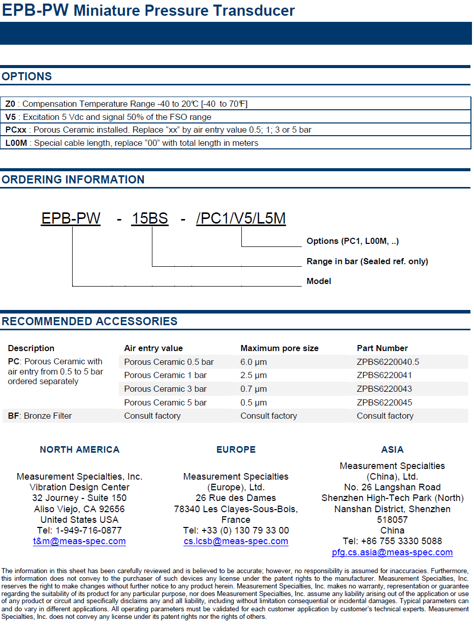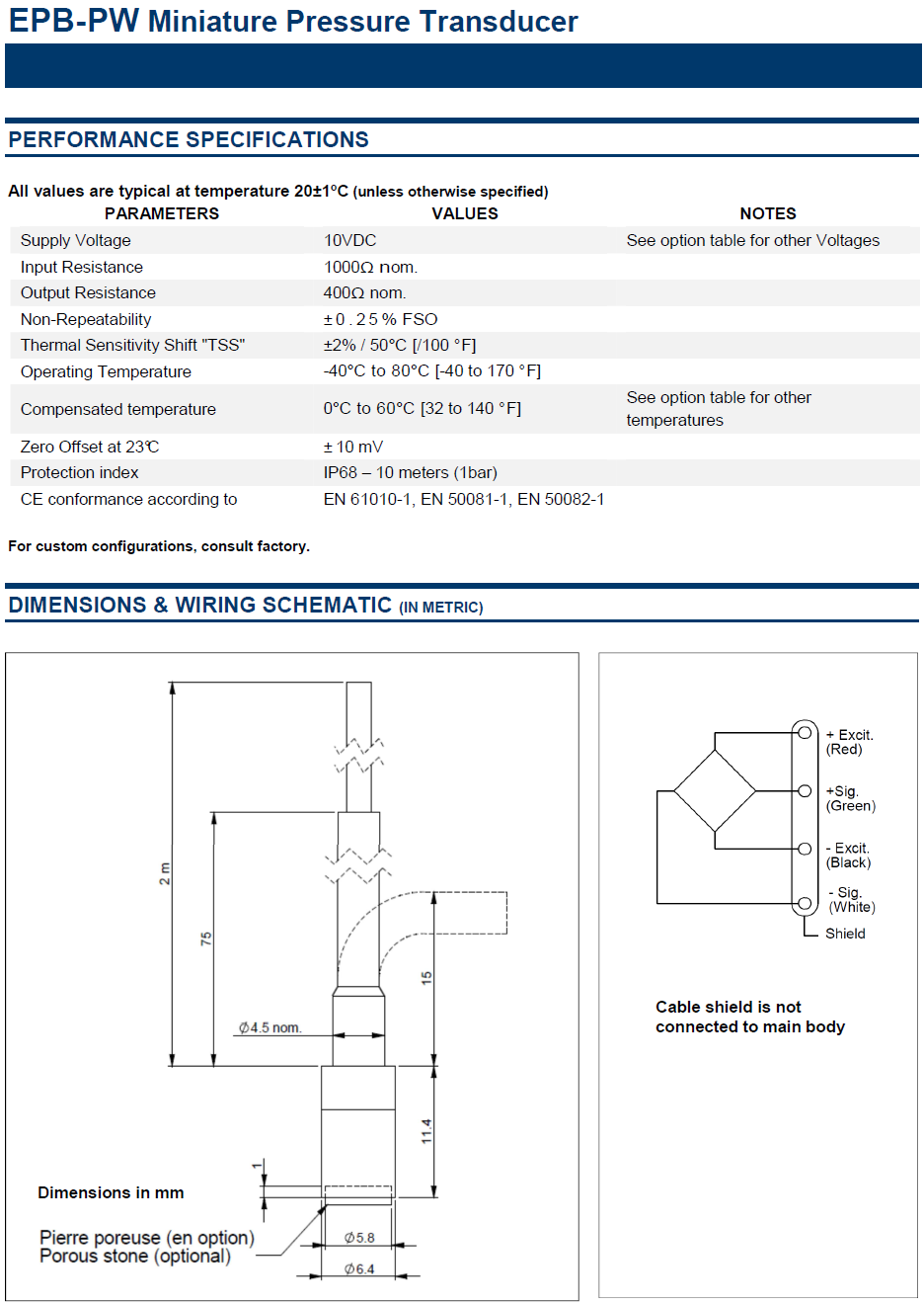 EPB-PW Miniature Pressure Transducer